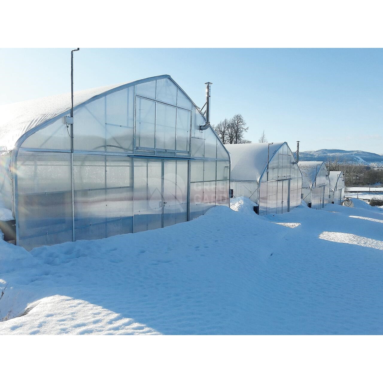 Structura este realizată din țeavă rotundă galvanizată Ø60 mm, grosime 2 mm, cu tirant și întărituri suplimentaredimensionate pentru încărcări mari de zăpadă și vânt. Galvanizarea este de tip Sendzimir Z275, ceea ce asigură o rezistență mecanică și anticorozivă de lungă durată.