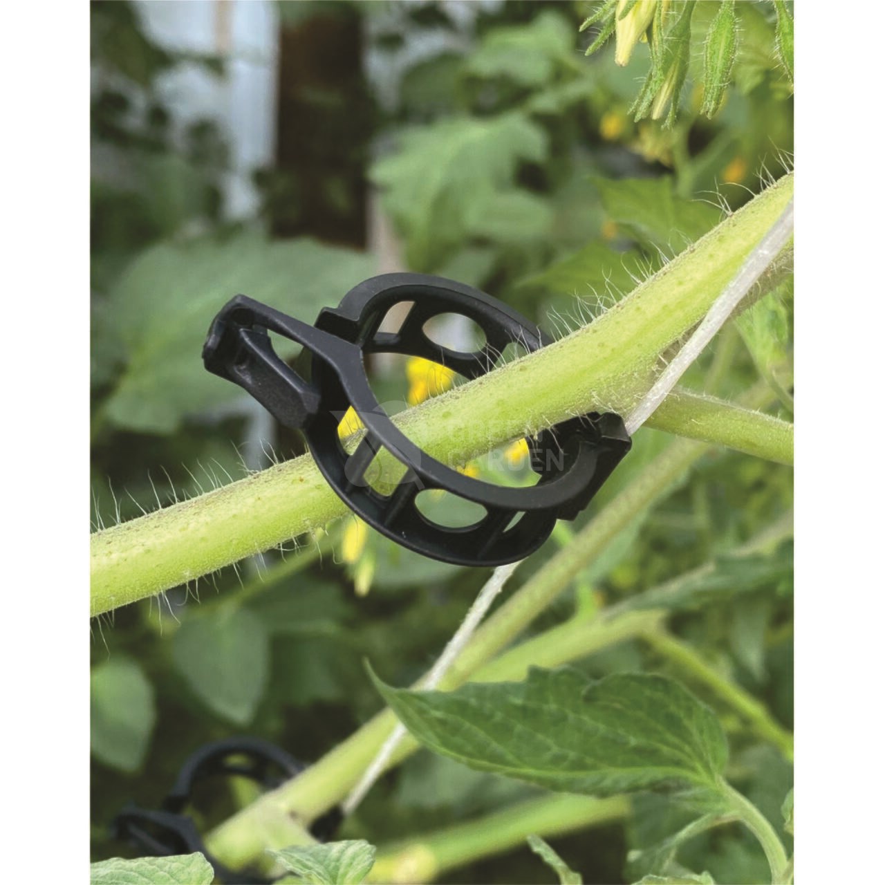 Clipsuri eco pentru tomate, castraveți și ardei, fabricate din polipropilenă de înaltă calitate. Datorită sistemului de închidere și deschidere rapidă, aceste clipsuri reduc timpul de lucru cu peste 30% față de metoda clasică de răsucire. Tehnologia extra-grip asigură o fixare puternică pe sfoară, prevenind alunecarea pe verticală a clipului în timpul coborârii plantelor, chiar și pentru plantele cu fructe grele. Designul inovator protejează tulpina împotriva ruperii sau strangulării, reducând riscul apariției bolilor. Ideale pentru utilizarea în sere și solarii, aceste clipsuri contribuie la reducerea costurilor cu forța de muncă și oferă un sistem de prindere eficient și ușor de învățat.