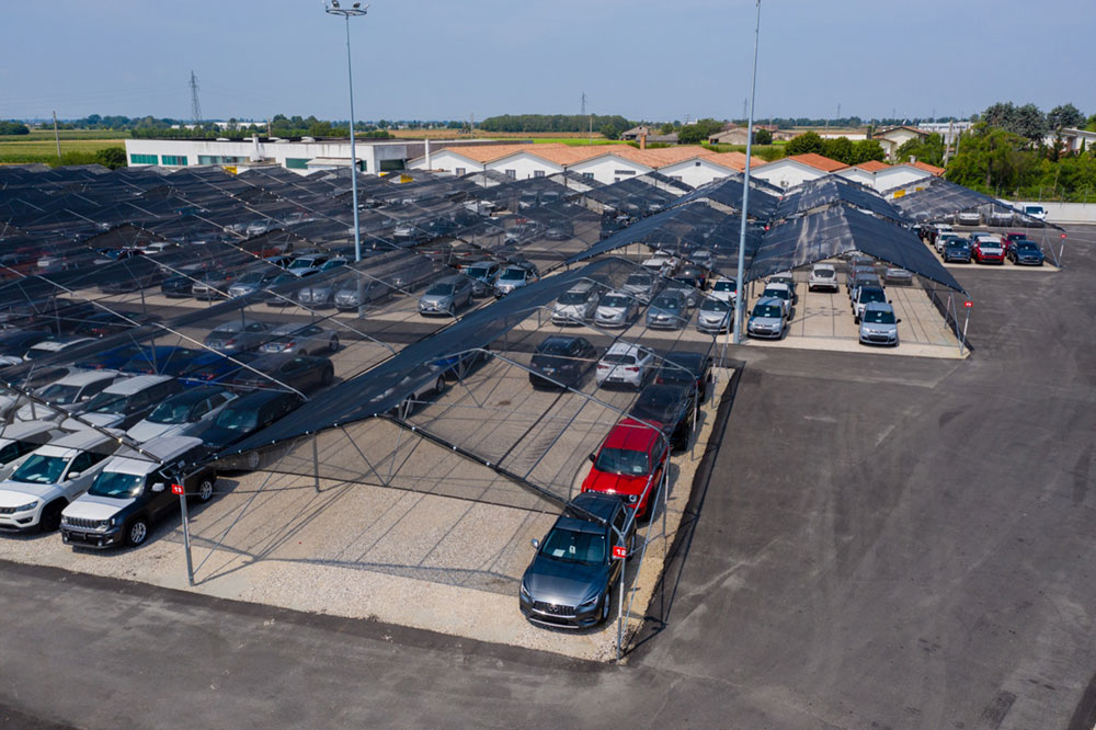 Opțional, se pot adăuga închideri laterale și frontale din plasă, cu acționare manuală sau motorizată, pentru protecție completă a vehiculelor parcate.