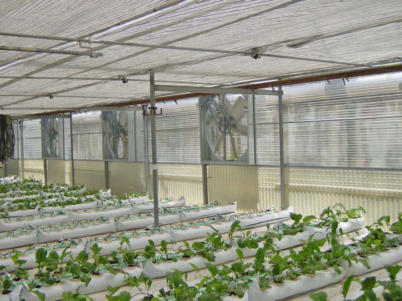 Structuri cu plase mobile acționate electric, controlate de senzori de lumină și temperatură.Optimizează intensitatea luminii și reduc stresul termic al plantelor.