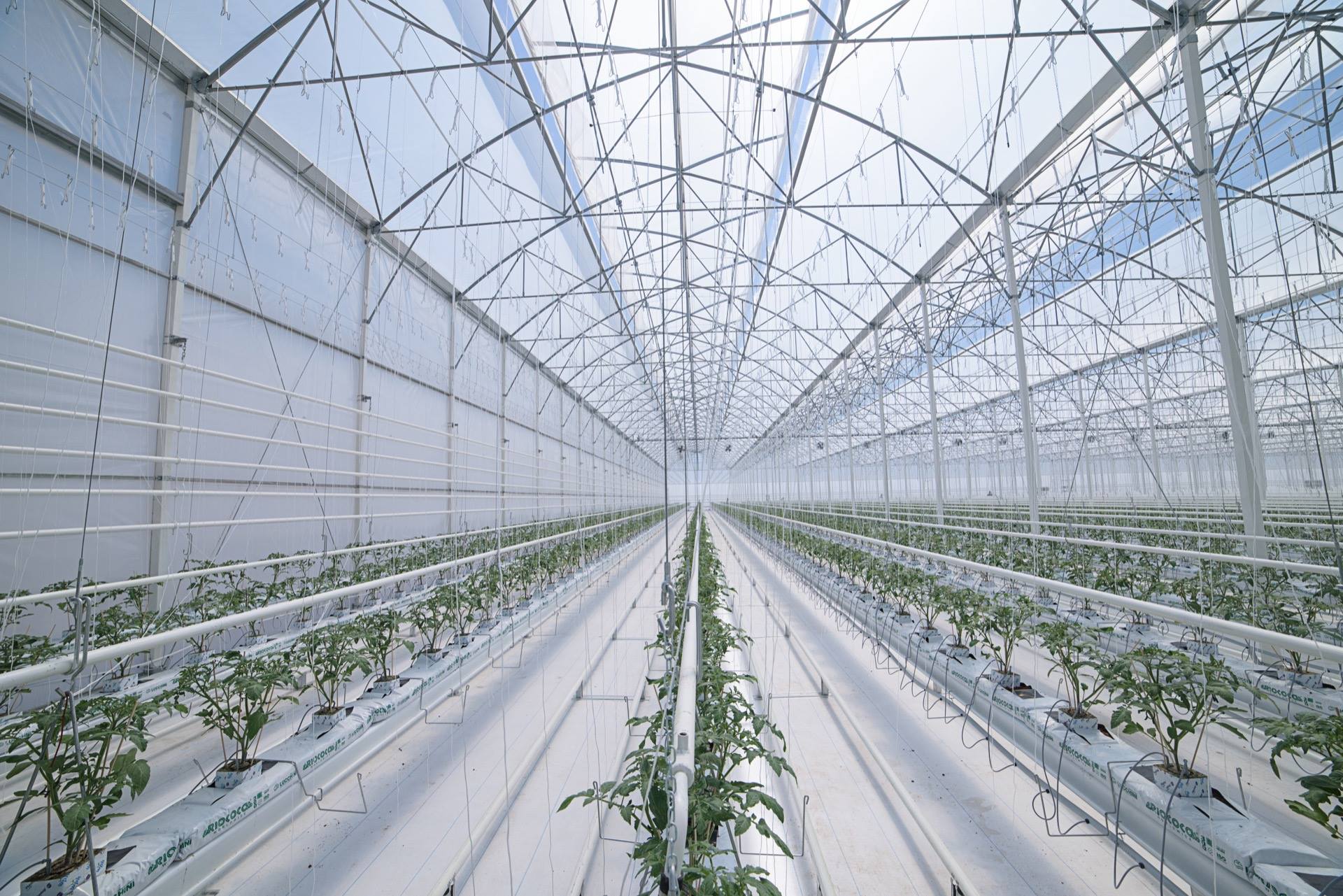 Tehnologie avansată de control climatic: ventilații, automatizări, sisteme de susținere a culturiilor suspendate, toate integrate în structură.