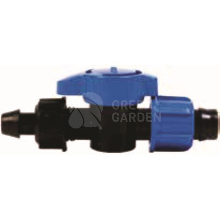 Robinet pentru bandă de picurare 16–17 mm, cu piuliță de strângere pentru țeavă LDPE/HDPE. Rezistent la utilaje agricole, ideal pentru control individual al liniilor.